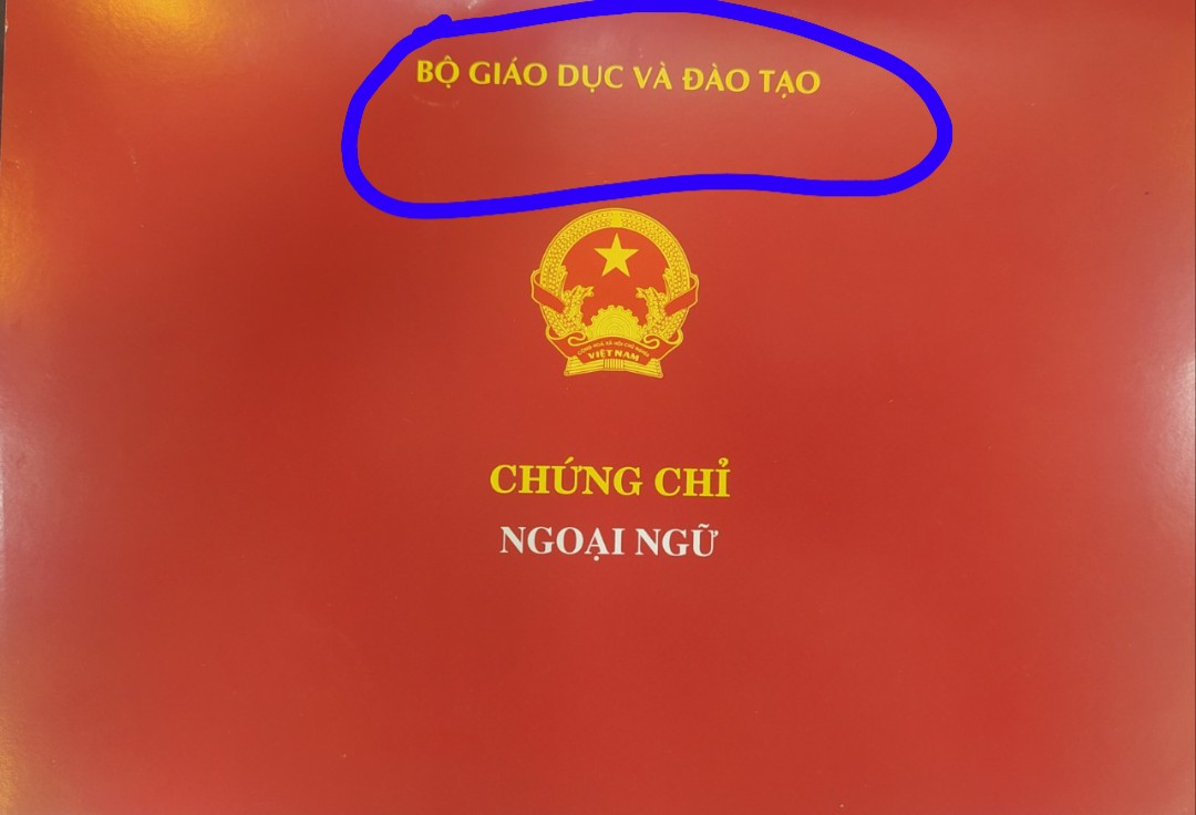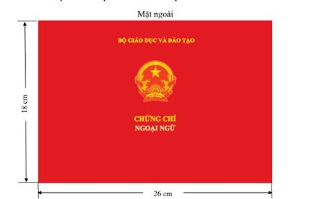- Mặt sau màu đỏ, in chữ BỘ GIÁO DỤC VÀ ĐÀO TẠO + CHỨNG CHỈ NGOẠI NGỮ.