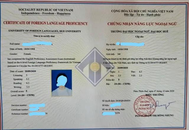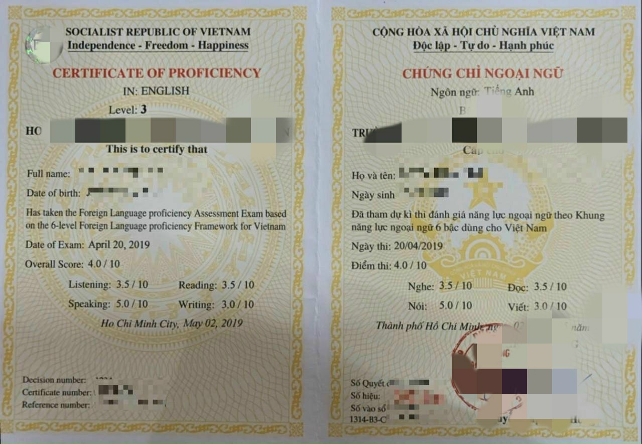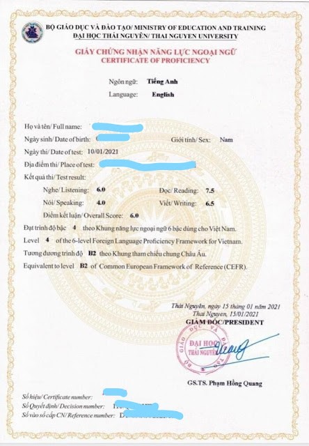 - Mẫu chứng chỉ tiếng Anh 6 bậc Việt Nam xem tại văn bản số ☛ Thông báo số 691/TB-QLCL (trang 10 của văn bản).