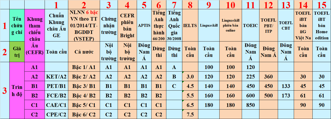 Bên dưới chúng tôi xin tập trung phân biệt 3 loại tiếng Anh A1A2B1B2C1C2 chuẩn nội bộ, quốc gia, quốc tế để anh chị dễ chọn loại tiếng Anh phù hợp mục đích sử dụng văn bằng.