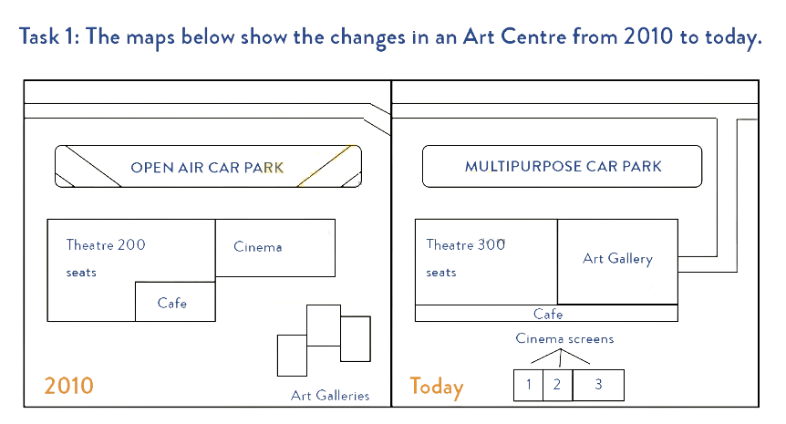 Task 1: The maps below show the changes in an Art Centre from 2010 to today.