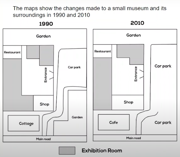 Task 1: The maps show the museum in 1990 and 2010. Summarize the information by selecting and reporting the main features, and make comparisons where relevant.