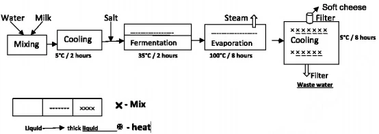 Task 1: The diagram shows the process of making soft cheese. The illustration depicts the stages involved in making soft cheese.