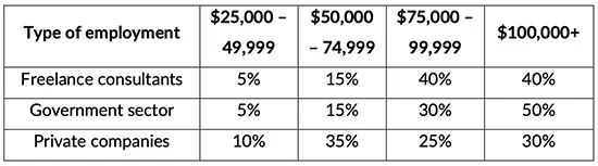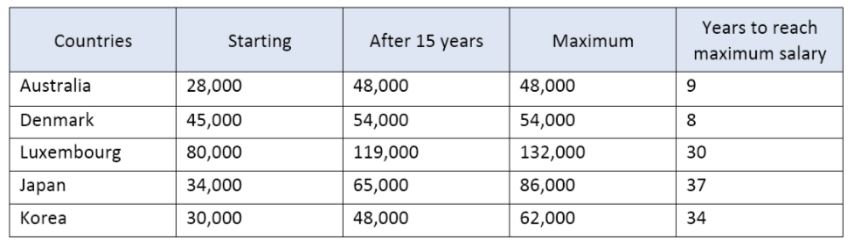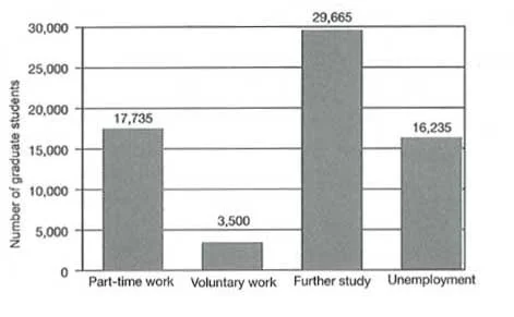 Task 1: The chart below shows what Anthropology graduates from one university did after finishing their undergraduate degree course. The table shows the salaries of the anthropologists in work after five years.