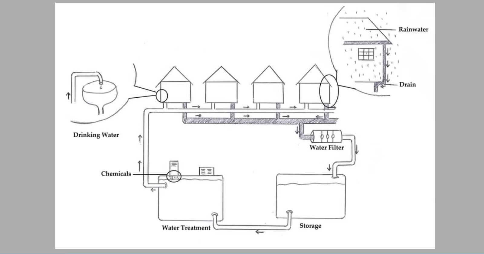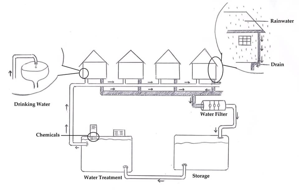 Task 1: The diagram below shows how rain water is collected and then treated to be used as drinking water in an Australian town.