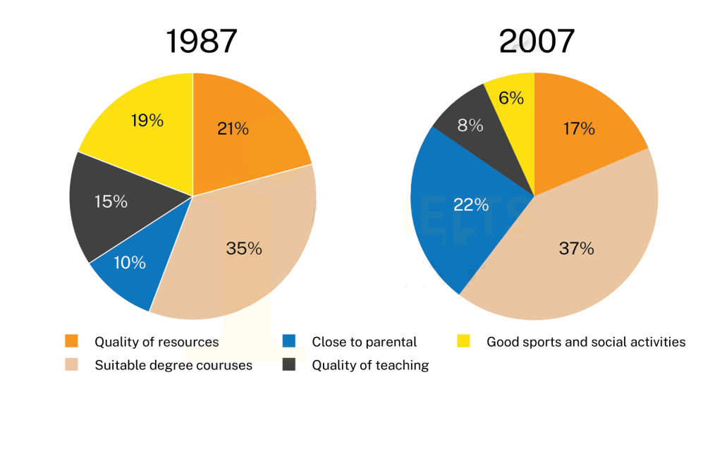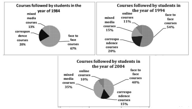 Task 1: The pie charts below show the different types of courses, which were followed by the students during the years of 1984, 1994 and 2004.