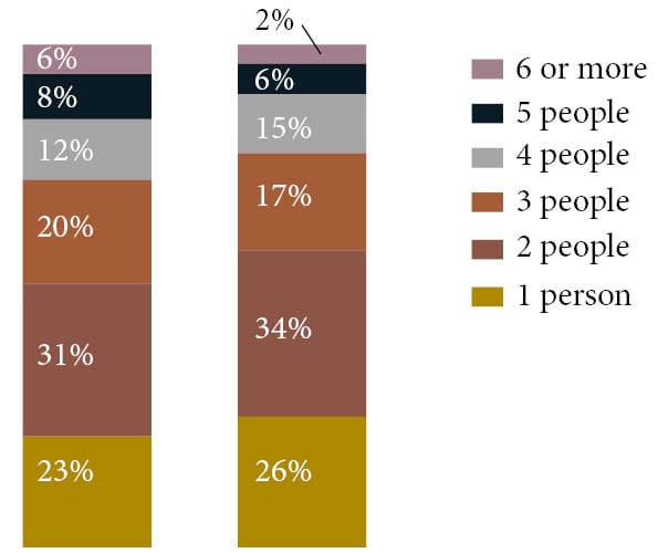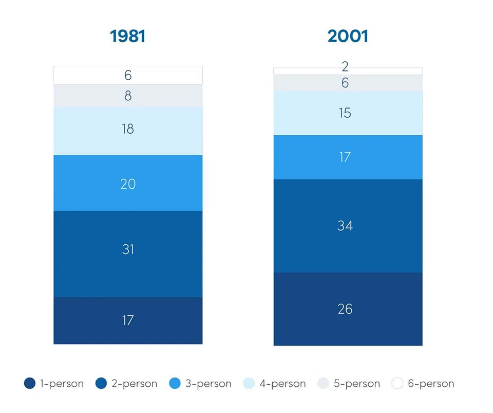 Task 1: The table gives information about changes in the number of people per household in Britain in 1981 and 2001.