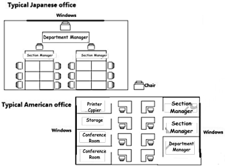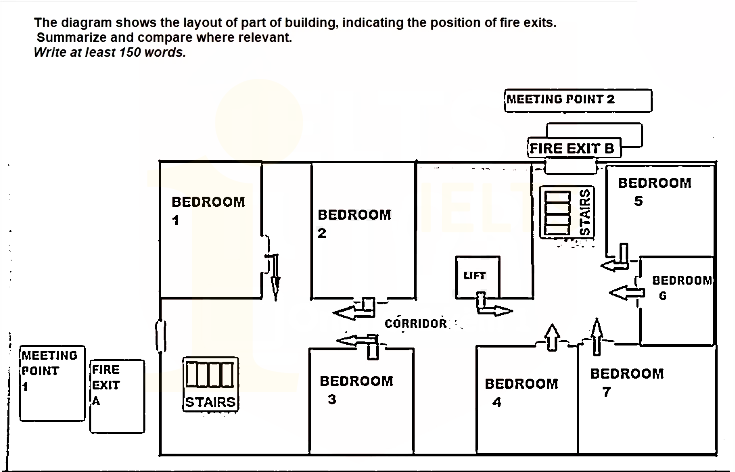 Task 1: The diagram shows the layout of part of building, indicating the position of fire exits. Summarize and compare where relevant.