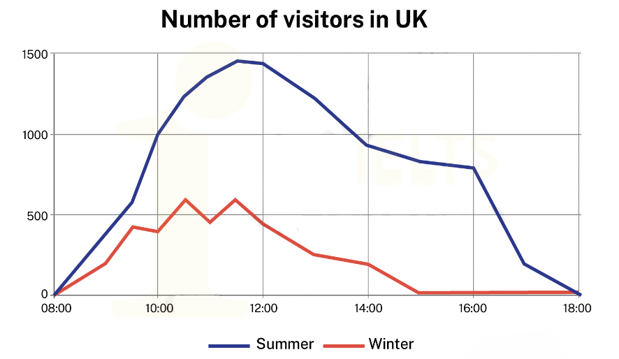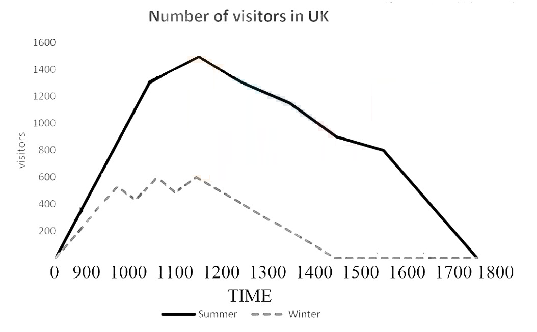 Task 1: The graph shows information about the average number of visitors entering a museum in summer and winter in 2003. Summarise the information by selecting and reporting the main features, and make a comparison where relevant.