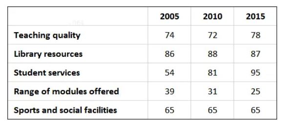 Task 1: The table below shows the results of surveys in 2005, 2010 and 2015 about McGill University. Summarise the information by selecting and reporting the main features, and make comparisons where relevant.