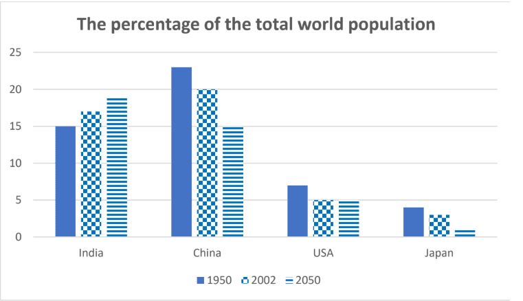 Task 1: The charts below give information on the ages of the populations of Yemen and Italy in 2000 and projections for 2050.