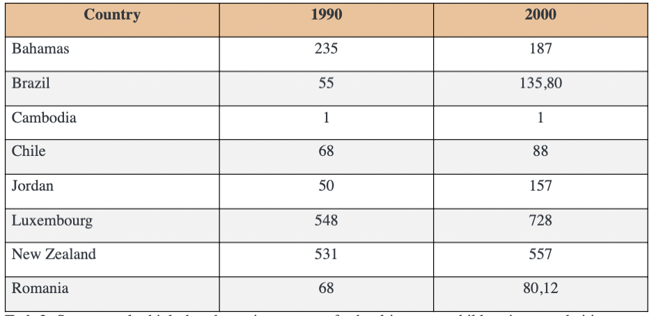 Task 1: The table below shows the number of motor vehicles per 1,000 inhabitants in eight countries in 1990 and 2000.
